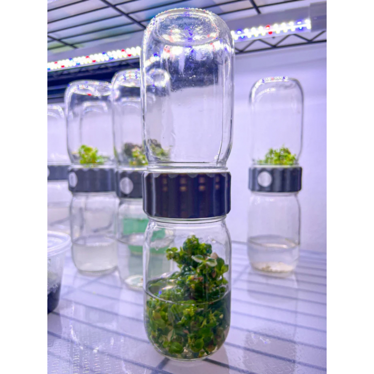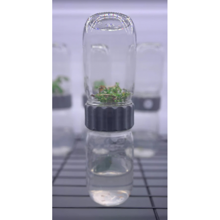 The BioCoupler™ is the simplest and most affordable temporary immersion system for plant tissue culture. The device connects two standard glass jars (with 70-450 necks, volumes ranging from 237 to 947 ml) using a unique patented adapter with a built-in microporous filter. This allows excellent gas exchange, high humidity, efficient nutrient distribution, and easy mixing—without the need for electricity or complex setup.