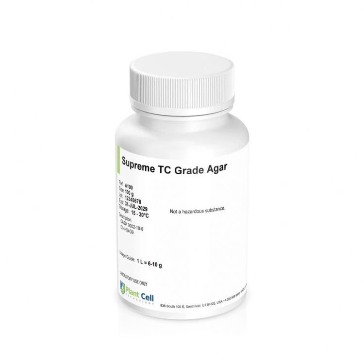 Supreme TC Grade Agar to wysokiej jakości substancja żelująca, idealna do stosowania w kulturach tkankowych roślin. Zapewnia solidną podstawę podłoża i równomierne rozmieszczenie składników odżywczych oraz hormonów, wspierając optymalny wzrost i rozwój roślin podczas hodowli in vitro. Jest popularnym wyborem ze względu na łatwość użycia, wysoką czystość i spójne wyniki.