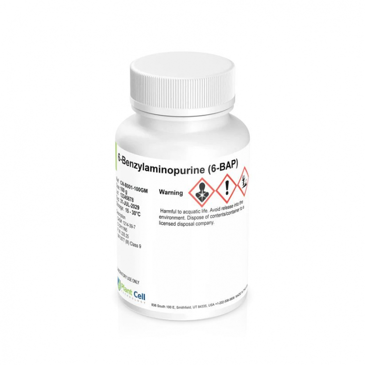 Proszek benzylaminopuryny (BAP) to regulator wzrostu roślin, szeroko stosowany w kulturach tkankowych w celu stymulacji podziału komórek i tworzenia pędów.