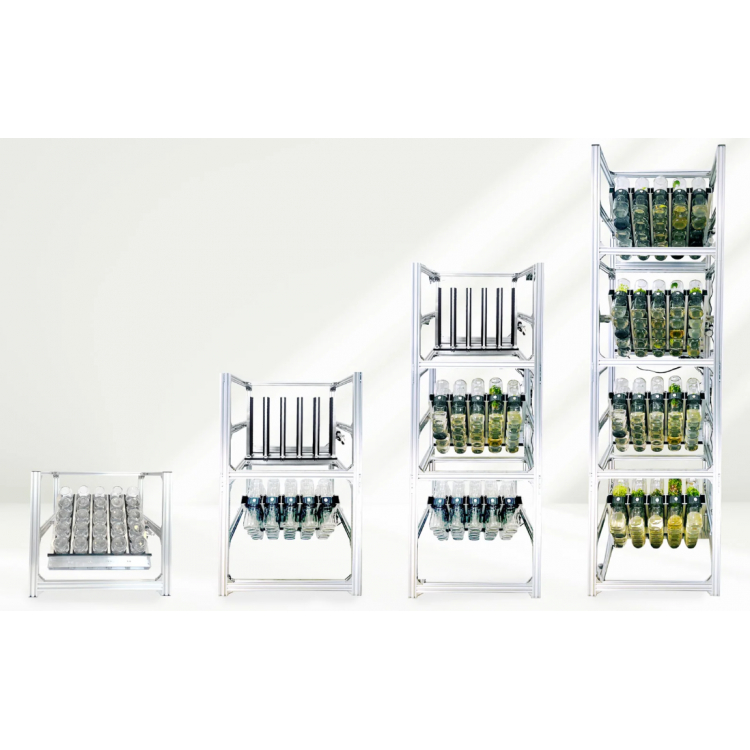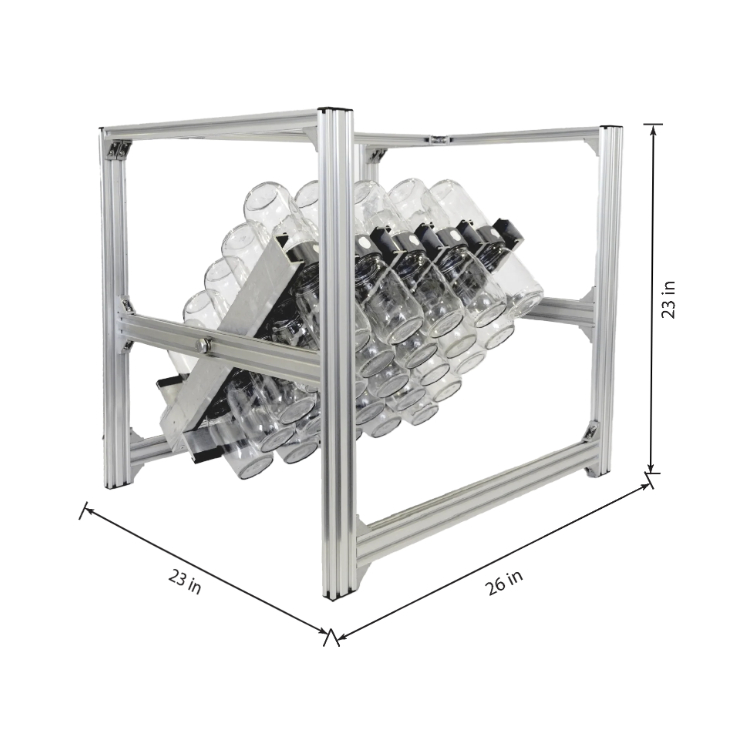 BioTilt™ wykorzystuje stojak, który bezpiecznie utrzymuje wiele jednostek BioCoupler™, oraz napęd, który wprawia je w ruch w precyzyjnym cyklu. Zautomatyzowana agitacja zapewnia równomierną dystrybucję składników odżywczych i wymianę gazową bez ingerencji manualnej. System może być również zaprogramowany do sterowania dodatkowymi czynnikami, takimi jak oświetlenie czy dopływ gazów, co dodatkowo zwiększa efektywność i skalowalność procesu.